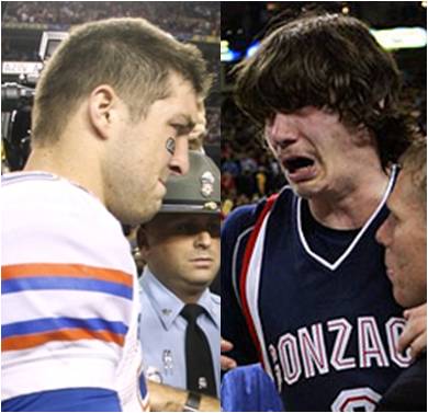 The only, and I mean ONLY, good thing to come out of this weekend’s football action was seeing Tebow get denied a shot at another National Championship. Of course, while many (including myself) don’t think he’s got much of a future in the NFL (other than maybe as a practice squad fullback), he does seem to show potential to become the next Rich Little, as that was an incredible impression he did of Adam Morrison after the game. Somebody please tell him THERE’S NO CRYING IN FOOTBALL!